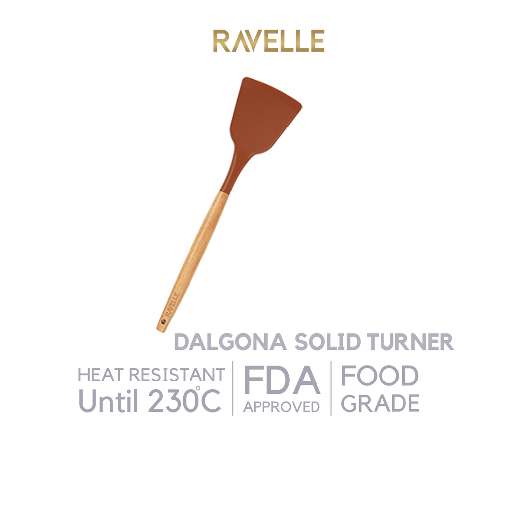 PREMIUM QUALITY Sutil Spatula Silikon Bahan Tebal Tidak Mudah Leleh - RAVELLE DALGONA SOLID TURNER - Spatula Gagang Kayu Tahan Panas Bpa Free Food Grade - Kitchen Utensils Anti Leleh