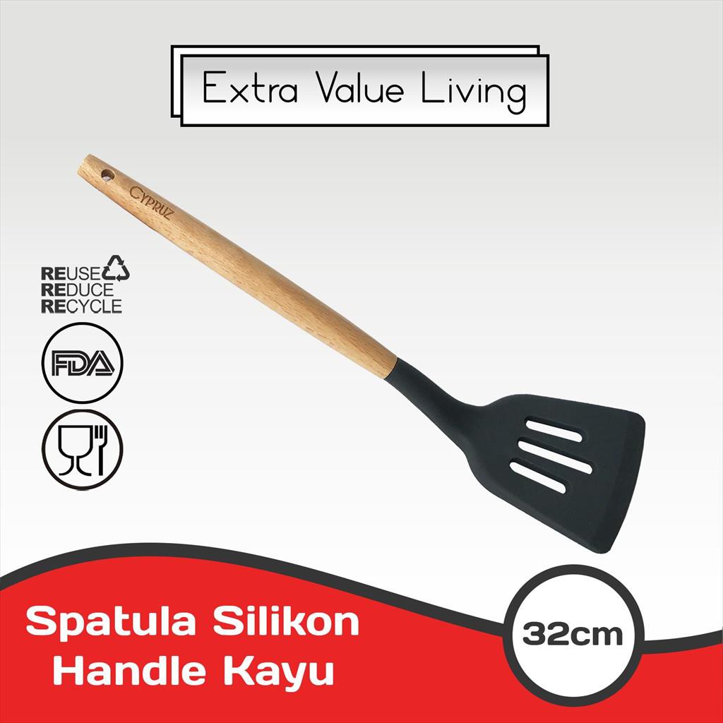 Produk CYPRUZ Spatula Silikon Turner Lubang Abu Gagang Kayu Slotted Turner Spatula Masak EVL-AM-0931-AU-TL ini harganya adalah Rp. 41.250,00 dan saat ini sedang Diskon 6%