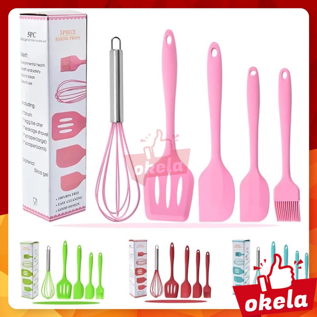 Okela - Spatula Silikon Set 5 In 1 Sodet Silicone Sutil Kuas Kocokan Telur Baking Kue Alat Masak Tahan Panas