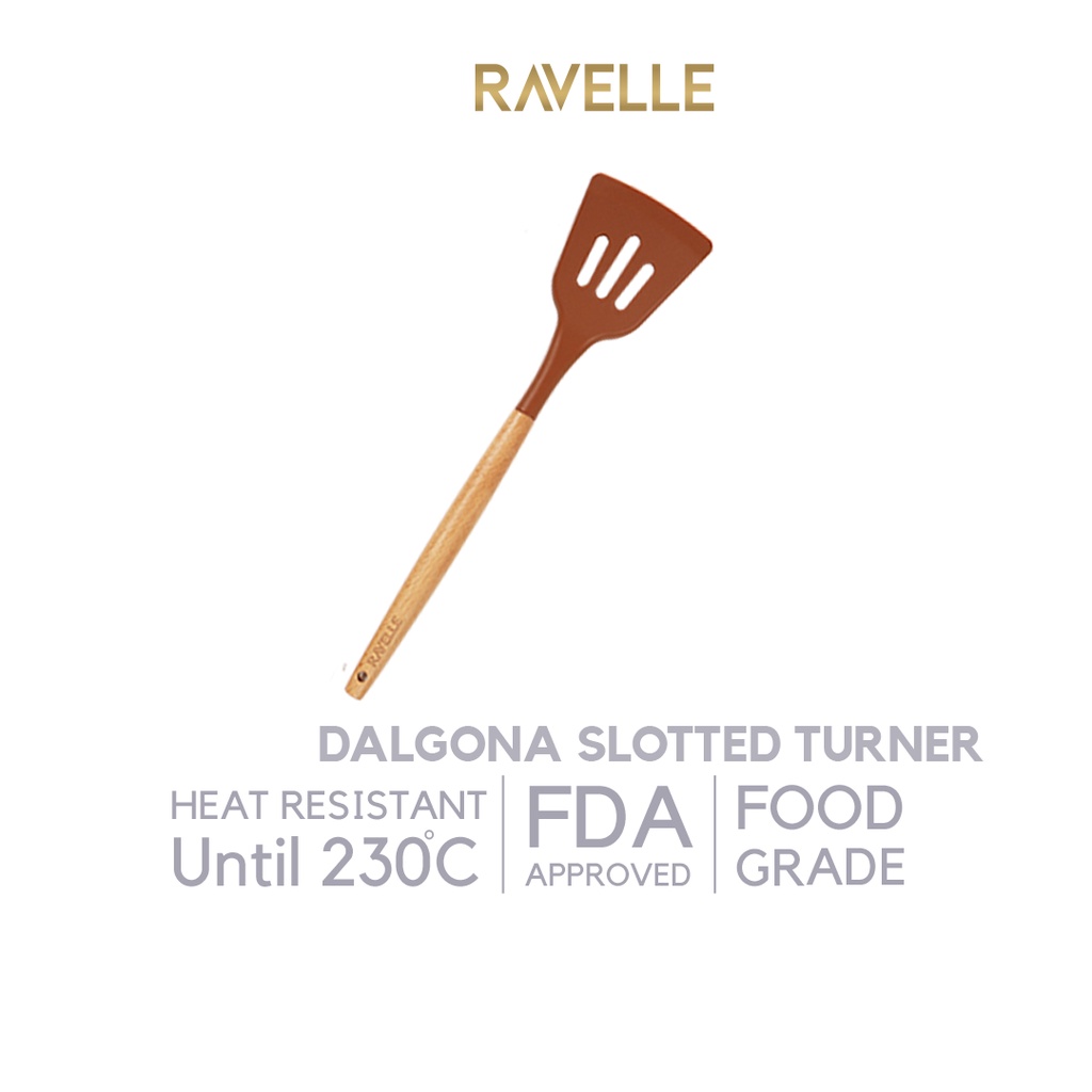 PREMIUM QUALITY Sutil Spatula Silikon Bahan Tebal Tidak Mudah Leleh - Ravelle Dalgona Slotted Turner - Spatula Gagang Kayu Tahan Panas Bpa Free Food Grade - Kitchen Utensils Anti Leleh