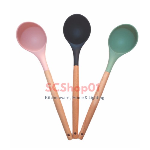 Sendok Sop Spatula Silikon Dengan Gagang Kayu Tahan Panas