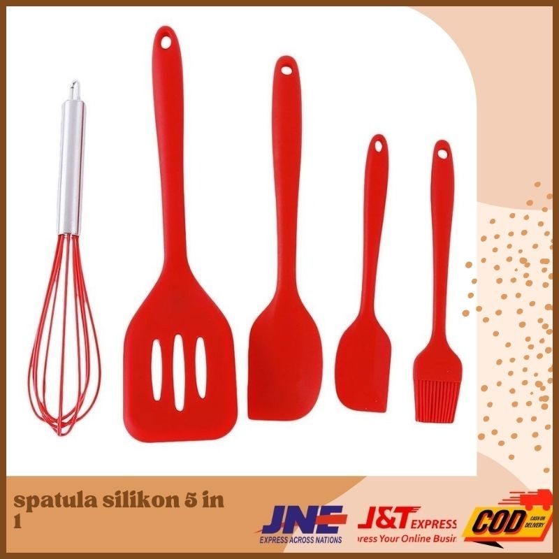 Spatula Silikon 5PC / Alat Masak Sutil SET Isi 5 Utensil Silicone Set [BISA COD!!]